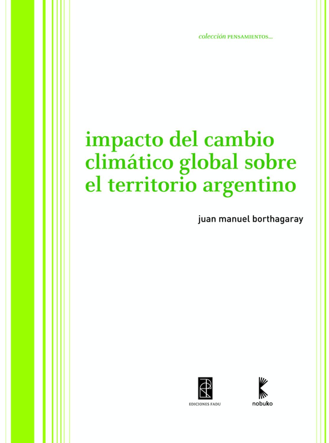 Descripción: Esta publicación consta de dos partes; la primera es una versión del trabajo expuesto en el 38º Seminario de Emergencias Planetarias, realizado en la ciudad de Erice, Sicilia, en agosto de 2007, con el título ""Impacto del cambio climático global sobre el territorio argentino"", la segunda parte desarrolla una sucinta reseña de algunos trabajos presentados al Seminario, que son lo más relevante al centro de nuestro interés.Los Seminarios de Emergencias Planetarias han originado una veintena de Paneles de Monitoreo Permanente (PMP) que se ocupan de cuestiones como el desarme nuclear, el SIDA y enfermedades infecciosas, desertificación, etc. En el año 2007, se dio particular importancia al cambio climático global y el PMP realizó sesiones conjuntas con los PMP de Clima y de Energía.Al preparar esta obra, el autor sufrió la falta de un documento de difusión elemental que condensara la información básica acerca de cómo estos fenómenos climáticos estaban afectando a la nación.Dos artículos publicados en la revista Ciencia hoy y otros materiales fueron las principales fuentes en las que se apoyó para desarrollar el presente trabajo. Estos documentos no están disponibles para el público y durante una conversación con el decano de la FADU, coincidimos en la conveniencia de editar el presente libro, con lo esencial de las conclusiones del CIMA y otras instituciones que investigan temas específicos relacionados con el cambio climático.