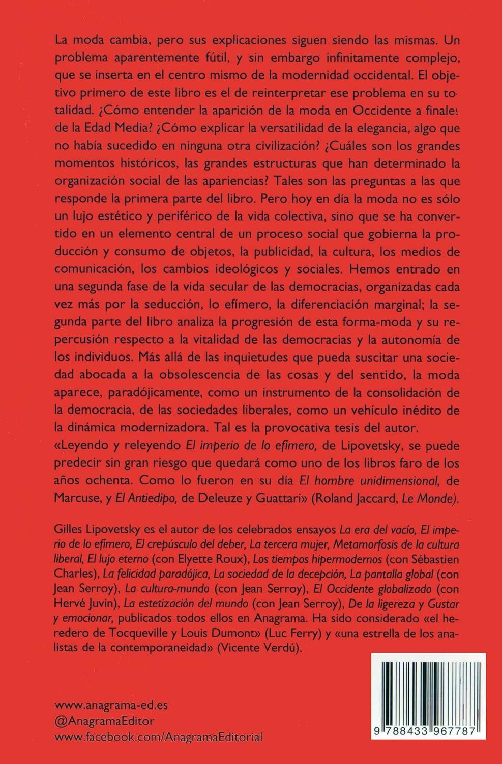 Descripción: La moda se inserta en el centro mismo de la modernidad occidental. El objetivo primero de este libro es el de reinterpretar este problema en su totalidad. ¿Cómo entender la aparición de la moda en occidente? ¿Cómo explicar la versatilidad de la elegancia? ¿Cuáles son los grandes momentos históricos, las grandes estructuras que han determinado la organización social de las apariencias? hoy en día, hemos entrado en una segunda fase de la vida secular de las democracias, organizadas cada vez más por la seducción, lo efímero, la diferenciación marginal; en la segunda parte del libro la moda aparece como un instrumento de la consolidación de la democracia, de las sociedades liberales, como un vehículo inédito de la dinámica modernizadora. tal es la provocativa tesis del autor.