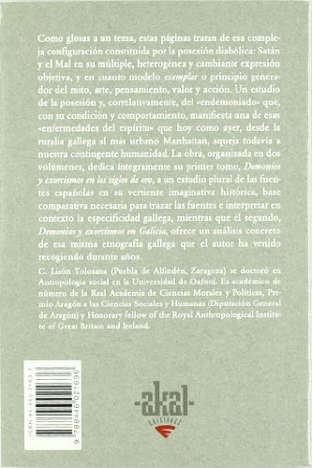 Descripción: «La España mental: el problema del Mal» trata, a modo de glosa, de esta compleja configuración constituida por la posesión diabólica: Satán y el Mal en su múltiple, heterogénea y cambiante expresión objetiva, y en cuanto modelo exemplar o principio generador del mito, arte, pensamiento, valor y acción. Un estudio de la posesión y, correlativamente, del «endemoniado» que, con su condición y comportamiento, manifiesta una de esas enfermedades del espíritu que hoy como ayer, desde la ruralía gallega al más urbano Manhattan, aqueja todavía a nuestra contingente humanidad. En el presente volumen, que se completa con el dedicado a «Demonios y exorcismos en Galicia», se lleva a cabo un estudio plural de las fuentes españolas en su vertiente imaginativa histórica, con especial hincapié en algunos temas de tanta relevancia histórica como la mística o la figura de Carlos II.