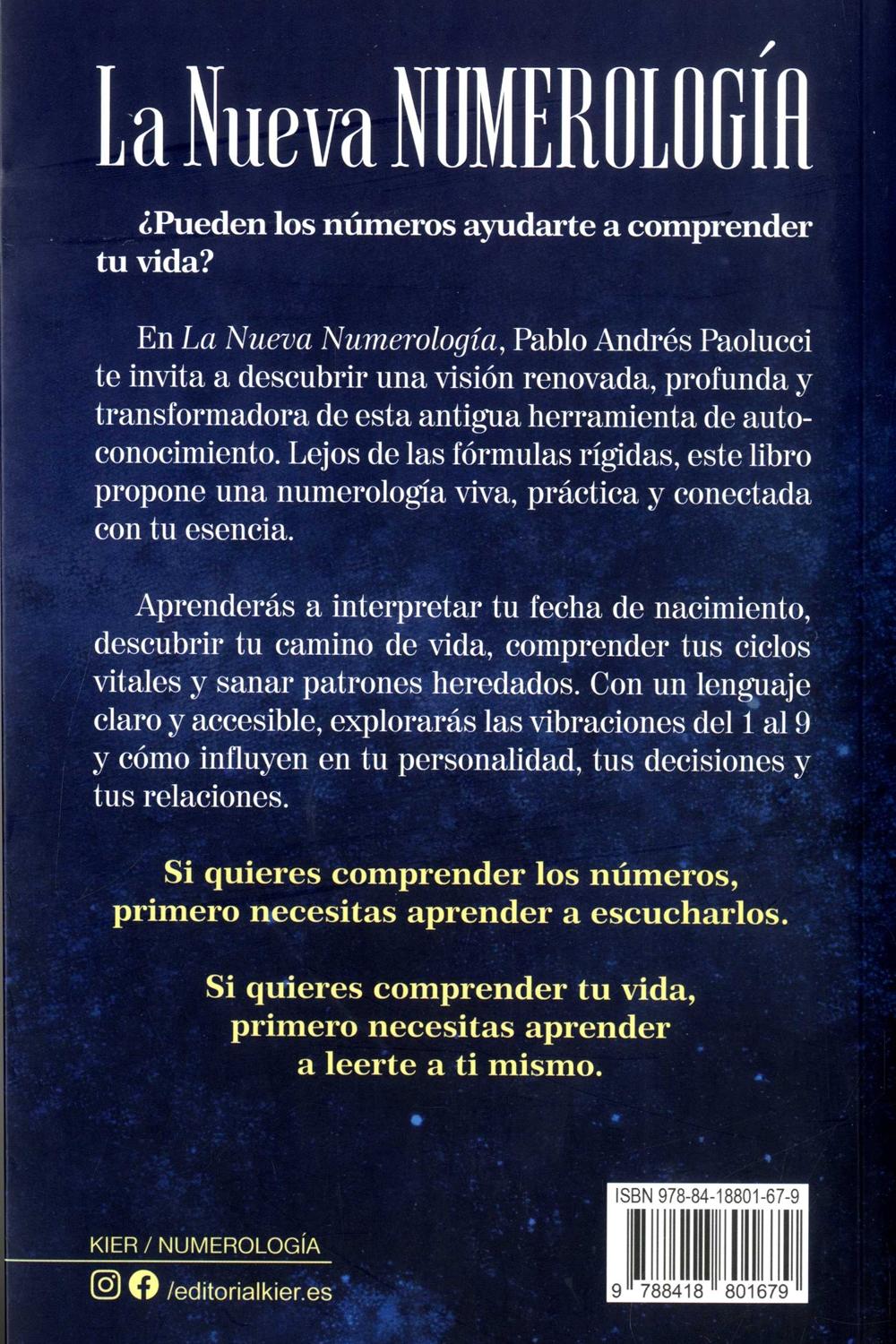 Descripción: La nueva numerología de Pablo Andrés Paolucci es una propuesta de autoconocimiento que recupera y renueva esta antigua herramienta. El autor invita a explorar las vibraciones de los números del 1 al 9 y cómo influyen en la personalidad, las decisiones y las relaciones, a través de un lenguaje claro y accesible. Más que una herramienta predictiva, el libro busca que el lector aprenda a "escuchar" y "leer" los números y a sí mismo para comprender su vida y crear la realidad que desea. Se presenta como un camino para adentrarse en el emocionante mundo del autoconocimiento y vivir en coherencia con el verdadero ser.