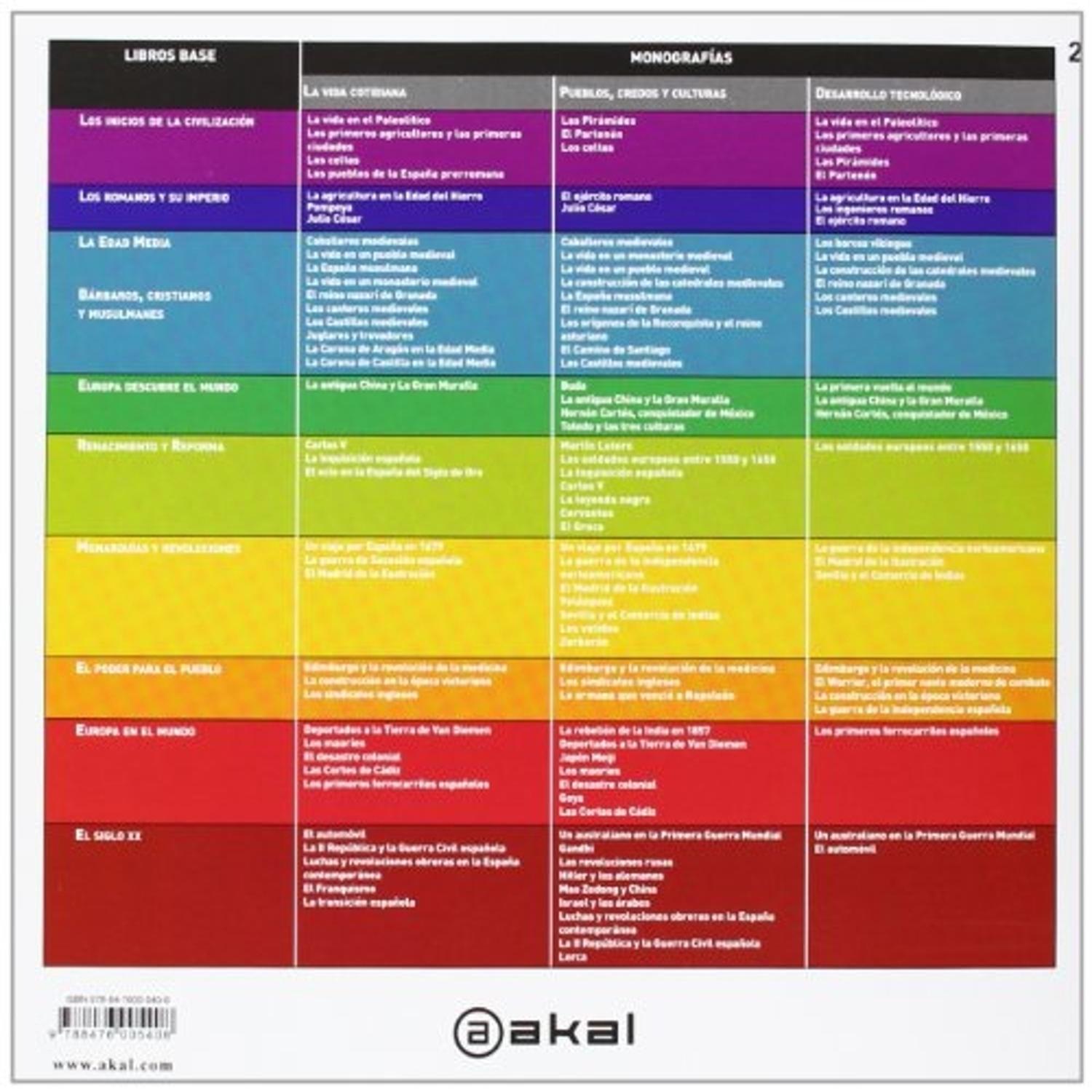 Descripción: La división estructural en libros base y monografías referidas a hechos cruciales para la interpretación de la historia de los pueblos ( conflictos, desarrollo social, cultural y tecnológico, vida cotidiana, pensamiento ) permite tanto la comprensión global de la historia de la humanidad, como la profundización sobre determinados acontecimientos o aspectos generalmente ignorados en los manuales al uso. Los estudiantes encuentran así una forma atractiva y unas amplias posibilidades de su aplicación al estudio de las múltiples facetas del devenir histórico y de las diferencias culturales y sociales. Se combinan así los grandes acontecimientos históricos con aspectos referidos a la vida cotidiana, al pensamiento o a los avances tecnológicos. Se ofrece de este modo una pluralidad de recursos para la investigación individual o colectiva, y para el desarrollo de actividades sobre temas que, a su vez, relacionan la historia del pasado para la comprensión del mundo actual. Todos los libros de esta colección contienen abundantes ilustraciones, esquemas, mapas y gráficos aclaratorios de los textos, y han sido diseñados en un formato especialmente adecuado para la consulta y el trabajo de los alumnos y alumnas