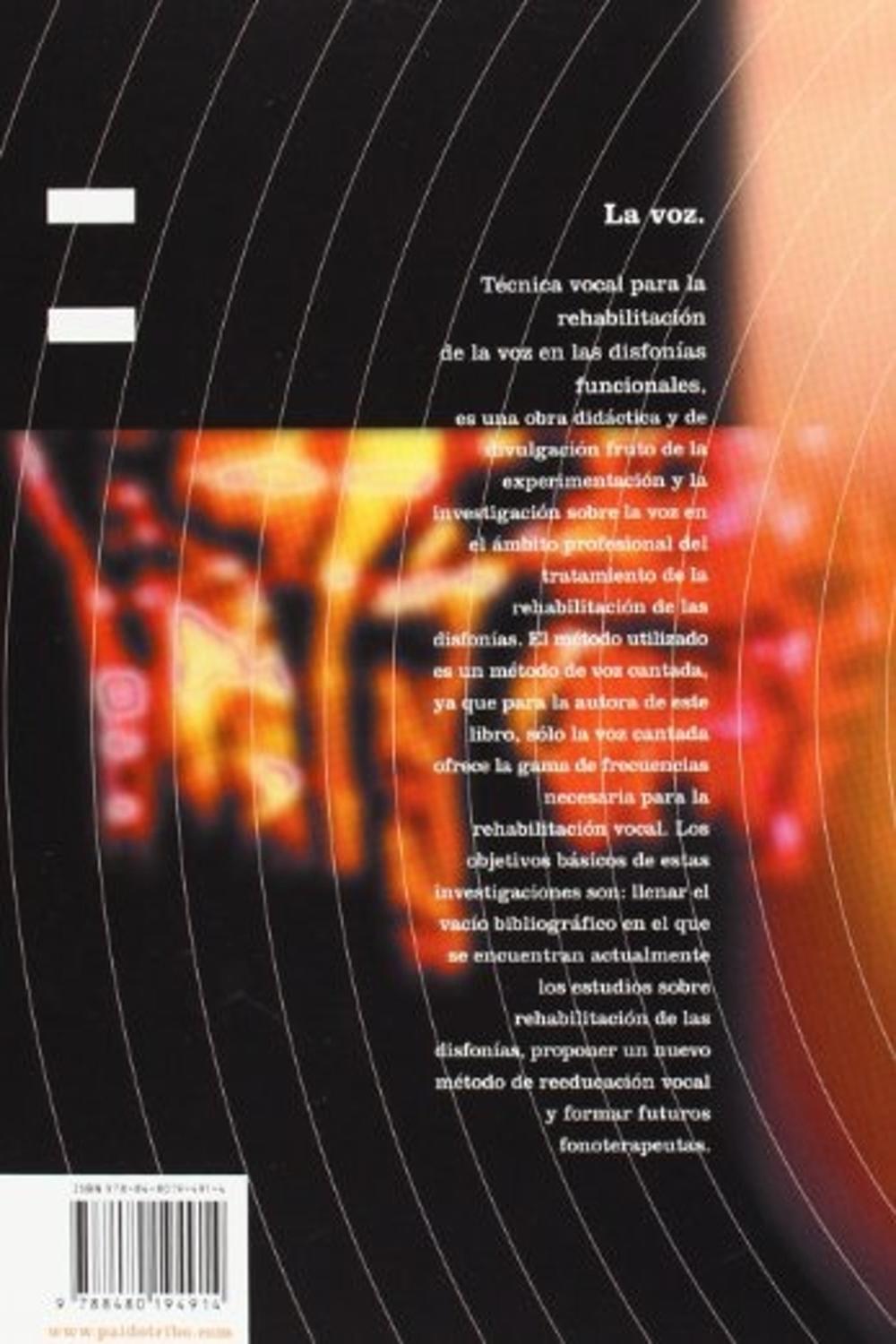Descripción: Técnica vocal para la rehabilitación de la voz en las disfonías funcionales, es una obra didáctica y de divulgación fruto de la experimentación y la investigación sobre la voz en el ámbito profesional de la rehabilitación de las disfonías. el método utilizado es un método de voz cantada, ya que para la autora de este libro, sólo la voz cantada ofrece la gama de frecuencias necesaria para la rehabilitación vocal.brlos objetivos básicos de estas investigaciones son: llenar el vacío bibliográfico en el que se encuentran actualmente los estudios sobre rehabilitación de las disfonías, proponer un nuevo método de reeducación vocal y formar futuros fonoterapeutas.