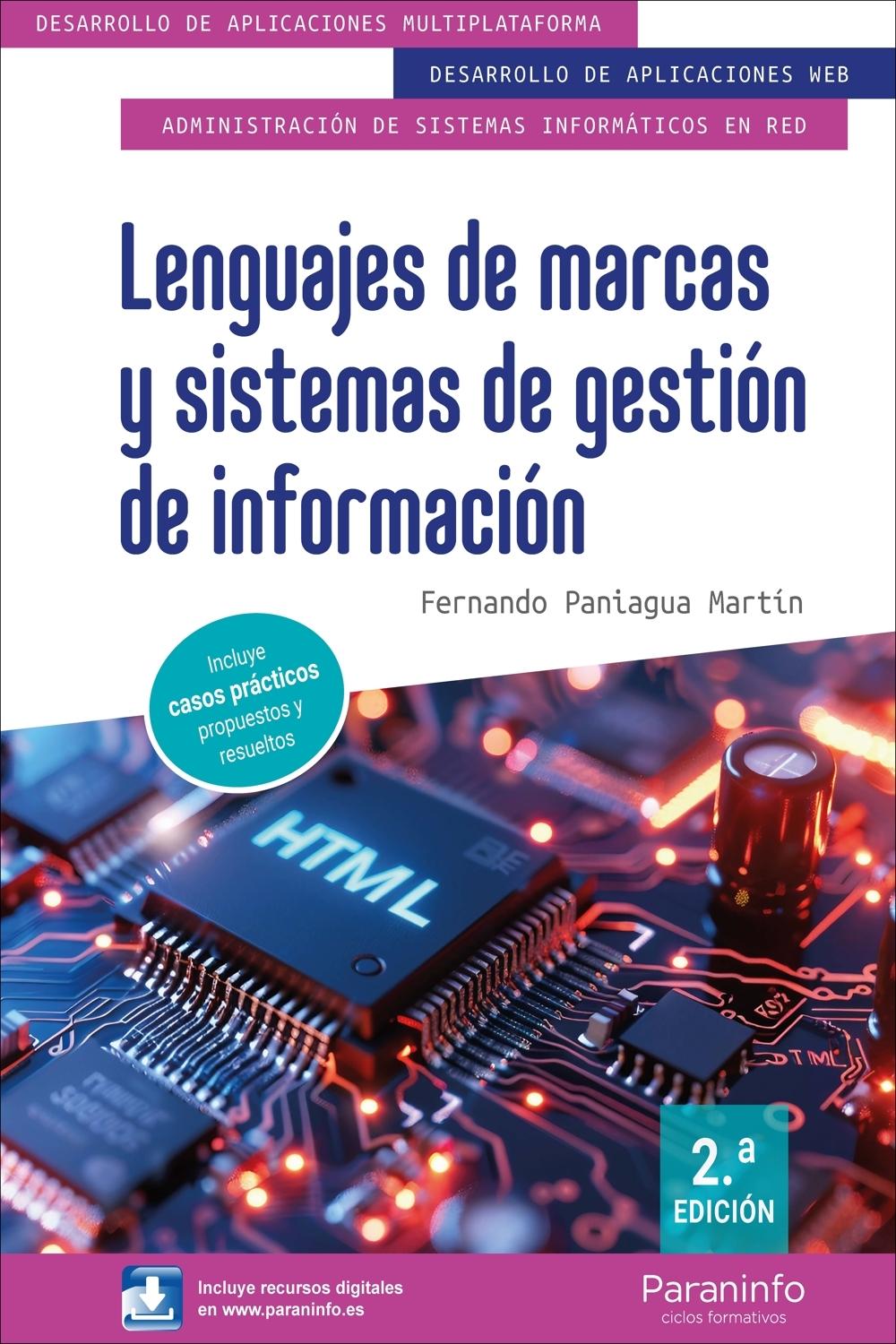 Descripción: En este libro se desarrollan los contenidos del módulo profesional Lenguajes de marcas y sistemas de gestión de información de los Ciclos Formativos de Grado Superior de Desarrollo de Aplicaciones Multiplataforma, Desarrollo de Aplicaciones Web y Administración de Sistemas Informáticos en Red, pertenecientes a la familia profesional de Informática y Comunicaciones.