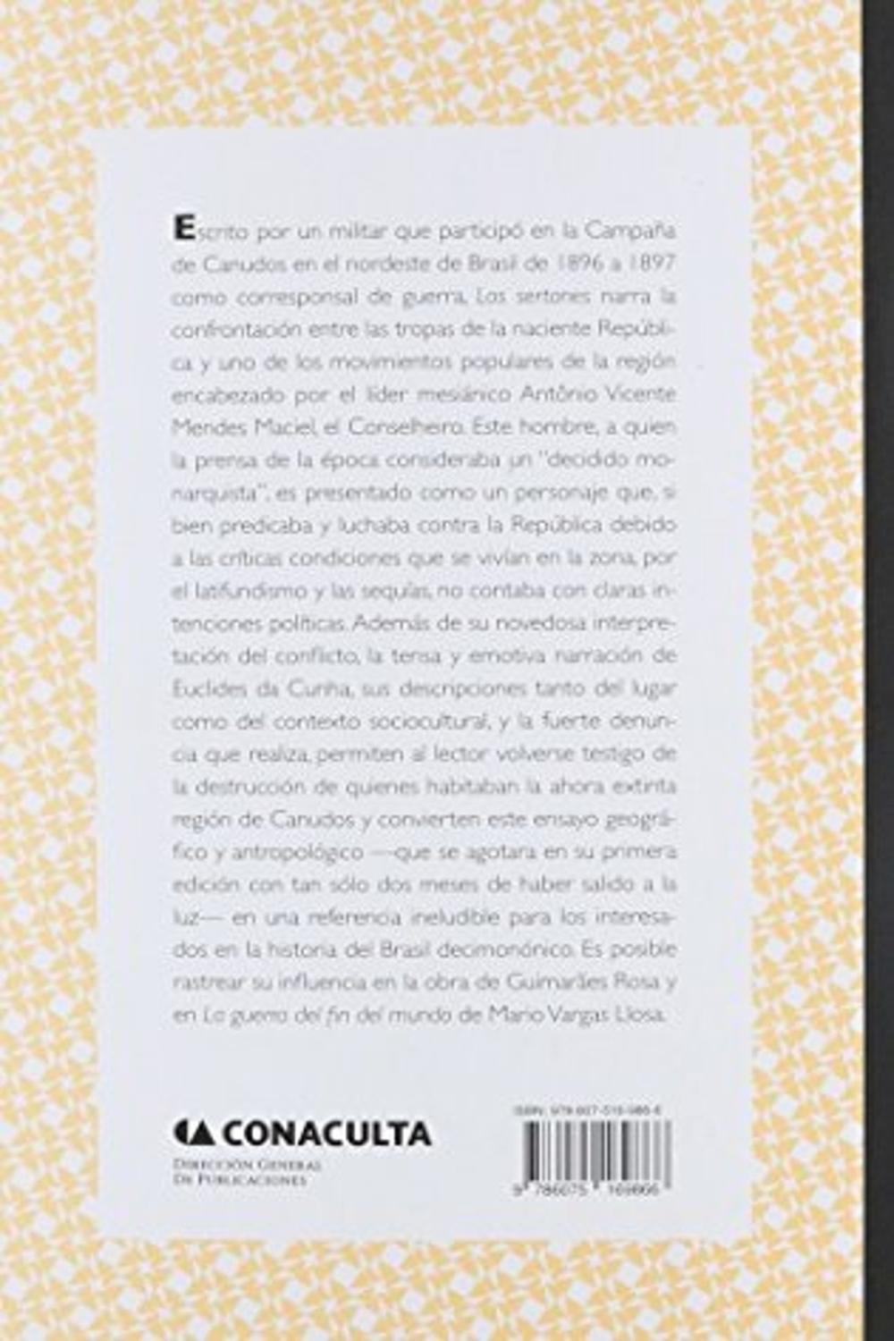Descripción: Escrito por un militar que participo en la Campaña de Canudos en el nordeste de Brasil de 1896 a 1897 como corresponsal de guerra, Los sertones narra la confrontación entre las tropas de la naciente República y uno de los movimientos populares de la región encabezado por el líder mesiánico António Vicente Mendes Maciel, El Conselheiro. Este hombre, a quien la prensa de la época consideraba un decidido monarquista, es presentado como un personaje que, si bien predicaba y luchaba contra la república debido a las críticas condiciones que se vivían en la zona, por el latifundismo y las sequías, no contaba con claras intenciones políticas.