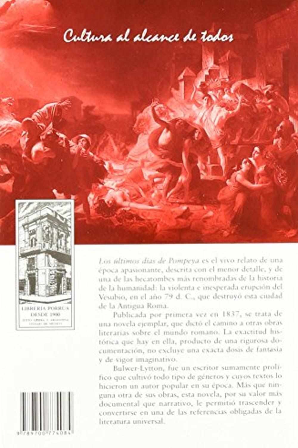 Descripción: Los últimos días de Pompeya es el vivo relato de una época apasionante, descrita con el menor detalle, y de una de las hecatombes más renombradas de la historia de la humanidad: la violenta e inesperada erupción del Vesubio, en el año 79 d. C., que destruyó esta ciudad de la Antigua Roma. Publicada por primera vez en 1837, se trata de una novela ejemplar, que dictó el camino a otras obras literarias sobre el mundo romano. La exactitud histórica que hay en ella, producto de una rigurosa documentación, no excluye una exacta dosis de fantasía y de vigor imaginativo. Bulwer-Lytton, fue un escritor sumamente prolífico que cultivó todo tipo de géneros y cuyos textos lo hicieron un autor popular en su época. Más que ninguna otra de sus obras, esta novela, por su valor más documental que narrativo, le permitió trascender y convertirse en una de las referencias obligadas de la literatura universal.