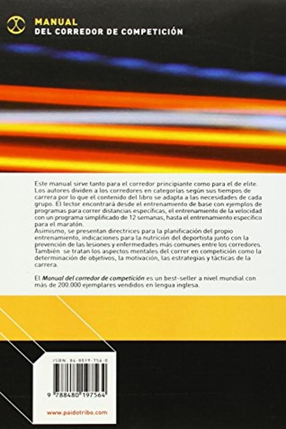 Descripción: Este manual sirve tanto para el corredor principiante como para el de elite. los autores dividen a los corredores en categorías según sus tiempos de carrera por lo que el contenido del libro se adapta a las necesidades de cada grupo. el lector encontrará desde el entrenamiento de base con ejemplos de programas para correr distancias específicas, el entrenamiento de la velocidad con un programa simplificado de 12 semanas, hasta el entrenamiento específico para el maratón.brasimismo, se presentan directrices para la planificación del propio entrenamiento, indicaciones para la nutrición del deportista junto con la prevención de las lesiones y enfermedades más comunes entre los corredores. también se tratan los aspectos mentales del correr en competición como la determinación de objetivos, la motivación, las estrategias y tácticas de la carrera.br el manual del corredor de competición es un best-seller a nivel mundial con más de 200.000 ejemplares vendidos en lengua inglesa.