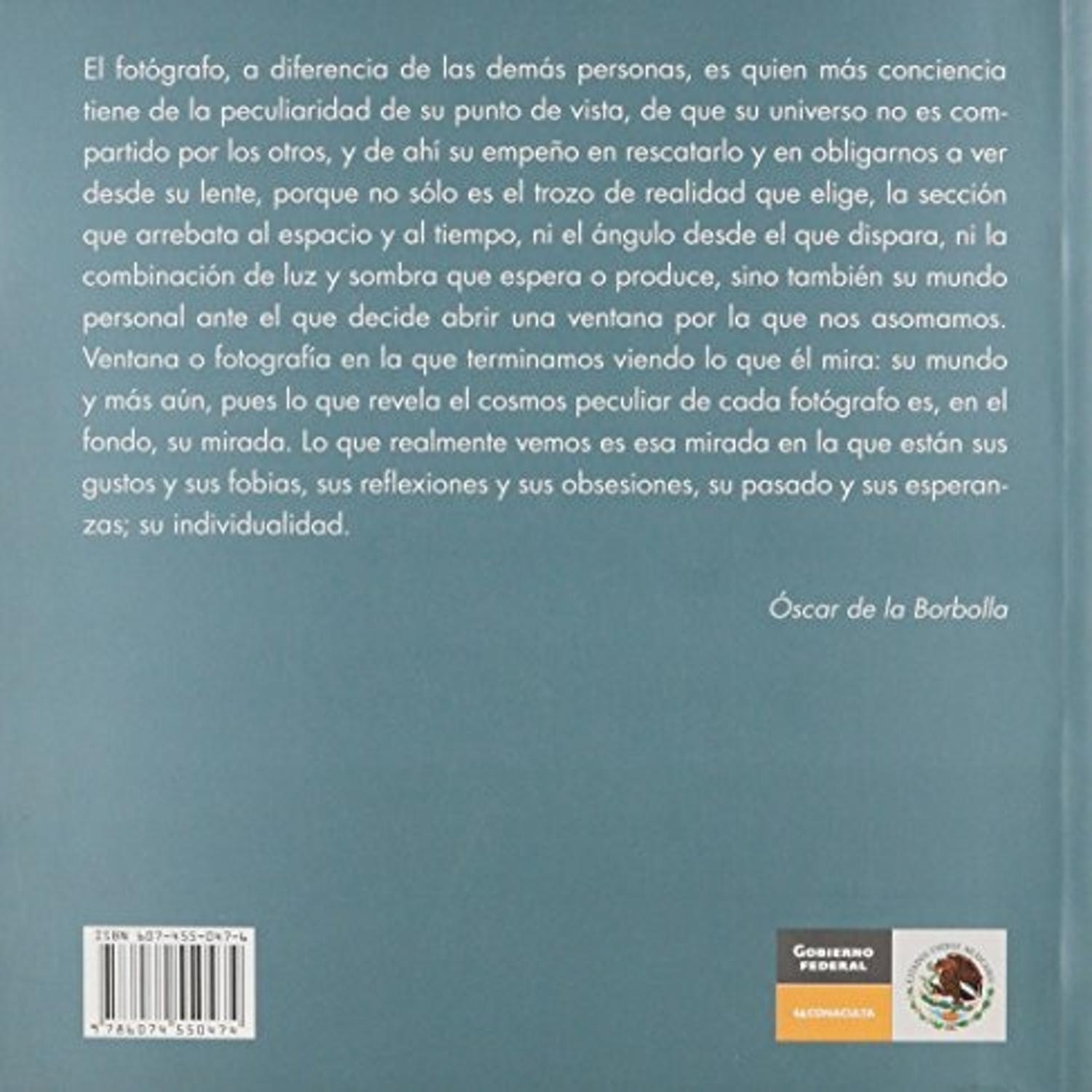 Descripción: El fotógrafo, a diferencia de las demás personas, es quien más conciencia tiene de la peculiaridad de su punto de vista, de que su universo no es compartido por los otros, y de ahí su empeño en rescatarlo y en obligarnos a ver desde su lente, porque no sólo es el trozo de realidad que elige, la sección que arrebata al espacio y al tiempo, ni el ángulo desde el que dispara, ni la combinación de luz y sombra que espera o produce, sino también su mundo personal ante el que decide abrir una ventana por la que nos asomamos. Ventana o fotografía en la que terminamos viendo lo que él mira: su mundo y más aún, pues lo que revela el cosmos peculiar de cada fotógrafo es, en el fondo, su mirada. Lo que realmente vemos en esa mirada en la que están sus gustos y sus fobias, sus reflexiones y sus obsesiones, su pasado y sus esperanzas; su individualidad. Óscar de la Borbolla