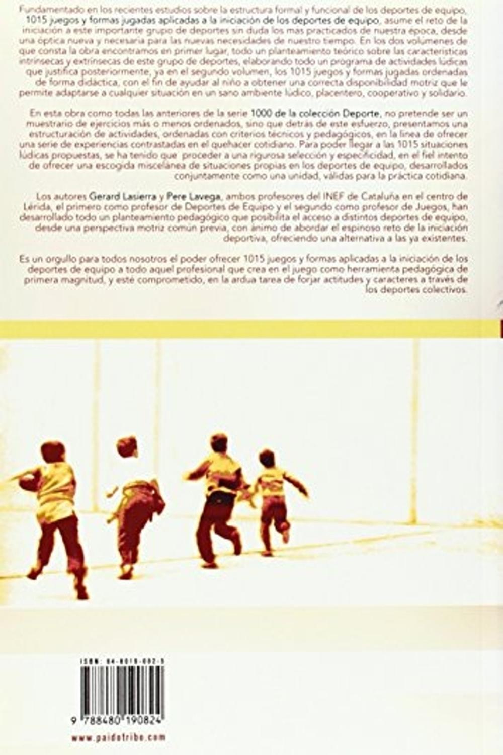 Descripción: Fundamentado en los recientes estudios sobre la estructura formal y funcional de los deportes de equipo, 1015 juegos y formas jugadas aplicadas a la iniciación de los deportes de equipo, asume el reto de la iniciación a este importante grupo de deportes, sin duda los más practicados de nuestra época, desde una óptica nueva y necesaria para las nuevas necesidades de nuestro tiempo.bren los dos volúmenes de que consta la obra encontramos en primer lugar, todo un planteamiento teórico sobre las características intrínsecas y extrínsecas de este grupo de deportes, elaborando todo un programa de actividades lúdicas que justifica posteriormente, ya en el segundo volumen, los 1015 juegos y formas jugadas ordenadas de forma didáctica, con el fin de ayudar al niño a obtener una correcta disponibilidad motriz que le permite adaptarse a cualquier situación en un sano ambiente lúdico, placentero, cooperativo y solitario.bresta obra pretende ser un muestrario de ejercicios más o menos ordenador, sino que detrás de este esfuerzo, presentamos una estructuración de actividades, ordenadas con criterios técnicos y pedagógicos, en la línea de ofrecer una serie de experiencias contrastadas en el quehacer cotidiano. para poder llegar a las 1015 situaciones lúdicas propuestas, se ha tenido que proceder a una rigurosa selección y especificidad, en el fiel intento de ofrecer una escogida miscelánea de situaciones propias en los deportes de equipo, desarrolladas conjuntamente como una unidad, válidas para la práctica cotidiana.brlos autores, gerard lasierra y pere lavega, ambos profesores del inef de cataluña en el centro de lérida, el primero como profesor de deportes de equipo y el segundo como profesor de juegos, han desarrollado todo un planteamiento pedagógico que posibilita el acceso a distintos deportes de equipo, desde una perspectiva motriz común previa, con ánimo de abordar el espinoso reto de la iniciación deportiva, ofreciendo una alternativa a las ya existentes.