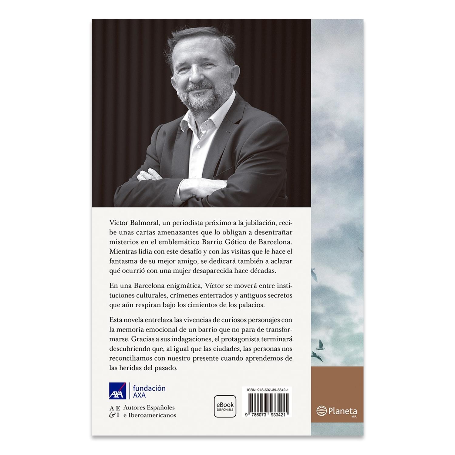 Descripción: Unas cartas anónimas, un cadáver oculto y una ciudad que nunca olvida: Misterio en el Barrio Gótico La novela de Sergio Vila-Sanjuán que recorre el alma secreta de Barcelona Víctor Balmoral, un periodista próximo a la jubilación, recibe unas cartas amenazantes que lo empujan a desentrañar misterios en el emblemático Barrio Gótico de Barcelona. Mientras lidia con este desafío y con las visitas que le hace el fantasma de su mejor amigo, se dedicará también a aclarar qué ocurrió con una mujer desaparecida hace décadas. En una Barcelona enigmática, Víctor se moverá entre instituciones culturales, crímenes enterrados y antiguos secretos que aún respiran bajo los cimientos de los palacios. Esta novela entrelaza las vivencias de curiosos personajes con la memoria emocional de un barrio que no para de transformarse. Gracias a sus indagaciones, el protagonista terminará descubriendo que, al igual que las ciudades, las personas nos reconciliamos con nuestro presente cuando aprendemos de las heridas del pasado.