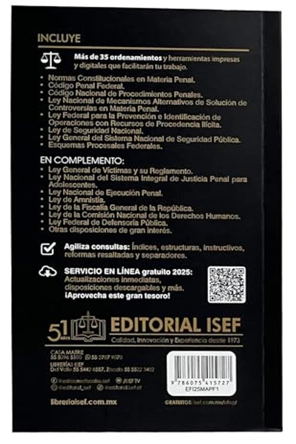 Descripción: Normas Constitucionales En Materia Penal. Código Penal Federal. Código Nacional De Procedimientos Penales. Ley Nacional De Mecanismos Alternativos De Solución De Controversias En Materia Penal. Ley Federal Para La Prevención E Identificación De Operaciones Con Recursos De Procedencia Ilícita. Reglamento De La Ley Federal Para La Prevención E Identificación De Operaciones Con Recursos De Procedencia Ilícita. Reglas De Carácter General A Que Se Refiere La Ley Federal Para La Prevención E Identificación De Operaciones Con Recursos De Procedencia Ilícita. Ley De Seguridad Nacional. Ley General Del Sistema Nacional De Seguridad Pública. Ley De La Guardia Nacional. Reglamento De La Ley De La Guardia Nacional. Ley Nacional Del Registro De Detenciones. Ley Nacional Sobre El Uso De La Fuerza. Ley Federal De Seguridad Privada. Reglamento De La Ley Federal De Seguridad Privada. Ley Federal Contra La Delincuencia Organizada. Ley Nacional De Extinción De Dominio. Ley General Para Prevenir, Investigar Y Sancionar La Tortura Y Otros Tratos O Penas Crueles, Inhumanos O Degradantes. Ley General Para Prevenir Y Sancionar Los Delitos En Materia De Secuestro, Reglamentaria De La Fracción Xxi Del Artículo 73 De La Cpeum. Ley Federal Para La Protección A Personas Que Intervienen En El Procedimiento Penal. Ley General Para Prevenir, Sancionar Y Erradicar Los Delitos En Materia De Trata De Personas Y Para La Protección Y Asistencia A Las Víctimas De Estos Delitos. Ley General Para La Prevención Social De La Violencia Y La Delincuencia. Contenido Complemento Multi Agenda Penal Federal Ley General De Víctimas. Reglamento De La Ley General De Víctimas. Ley General En Materia De Desaparición Forzada De Personas, Desaparición Cometida Por Particulares Y Del Sistema Nacional De Búsqueda De Personas. Ley Federal De Declaración Especial De Ausencia Para Personas Desaparecidas. Ley Nacional Del Sistema Integral De Justicia Penal Para Adolescentes. Ley Nacional De Ejecución Penal. Ley De Amnistía. Ley De La Fiscalía General De La República. Ley De La Comisión Nacional De Los Derechos Humanos. Ley Federal Para La Administración Y Enajenación De Bienes Del Sector Público. Ley Federal De Defensoría Pública. Ley De Extradición Internacional. Ley Federal De Armas De Fuego Y Explosivos. Reglamento De La Ley Federal De Armas De Fuego Y Explosivos. Esquemas Procesales.
