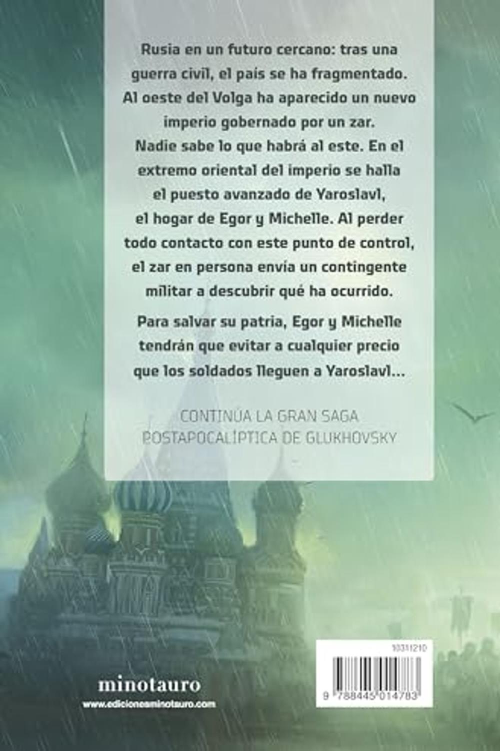 Descripción: Llega la segunda parte de esta duología de Dmitry Glukhovsky. Protegido por puestos defensivos y tropas cosacas, se alza el Moscú milenario. Dentro de los tres anillos de defensa (y detrás de los muros del Kremlin) se alza su imponente palacio. Allí, Su Majestad el Emperador premia a lo mejor de lo mejor, a los más valientes entre los valientes, la flor del cuerpo de oficiales, el apoyo y la esperanza del imperio, con una misión. Tendrán que abandonar la capital, decorada festivamente para el día del Arcángel Miguel, e ir a las tierras oscuras que una vez pertenecieron a la gran Rusia, para resolver un misterio. De camino a su destino destino más allá del Volga y detrás del impenetrable velo de niebla, el interrogante penderá sobre las tropas cosacas: ¿dónde desaparecieron todos los exploradores y por qué los puestos fronterizos guardaron silencio al respecto?