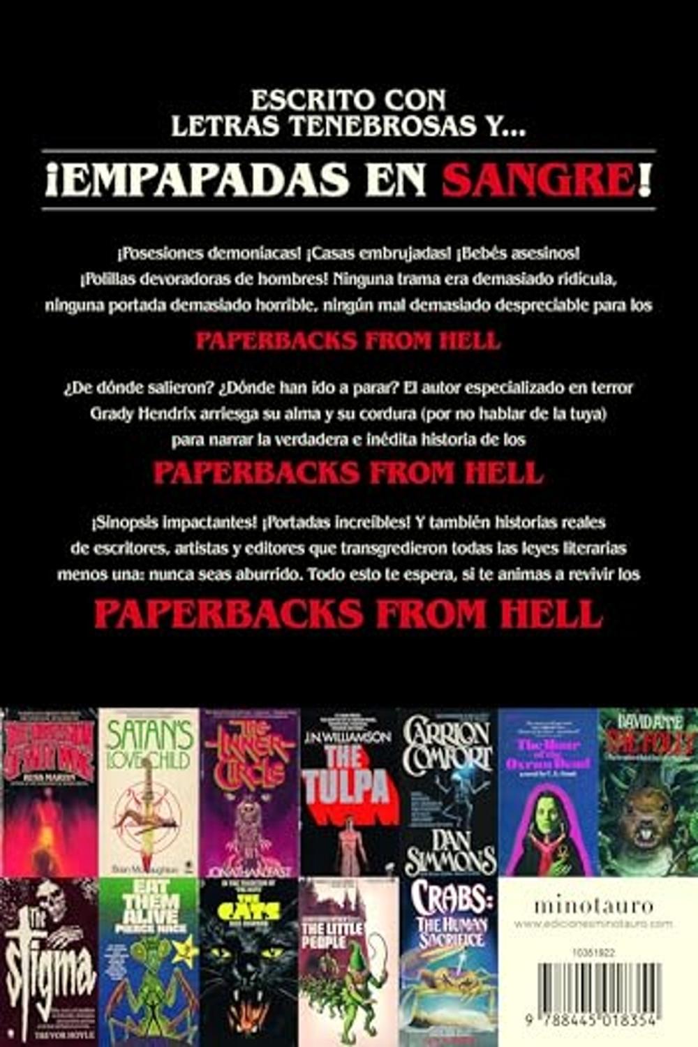 Descripción: Una oscura historia del auge del terror de bolsillo. Adéntrate en este recorrido por las novelas de terror más icónicas de los años '70 y '80... si te atreves. Adoradores del diablo, niños satánicos, casas encantadas, esqueletos vestidos de etiqueta, muñecos diabólicos, leprechauns nazis o cangrejos asesinos con cuchillos.Todos tiene cabida en esta oscura historia del auge del terror de bolsillo! El carismático Grady Hendrix, autor de terror y fiel coleccionista de libros antiguos de bolsillo ofrece, además, una visión ingeniosa de estos thrillers de mala calidad que se esforzaron por ser el próximo exorcista o el próximo bebé de Rosemary. Este ensayo a todo color incluye, además, perfiles de artistas y autores conocidos como V. C. Andrews y R. L. Stine, además de muchos otros que se han desvanecido en la oscuridad.