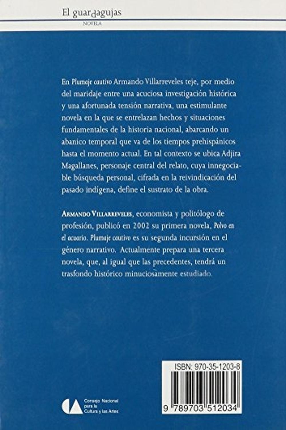 Descripción: En Plumaje cautivo Armando Villar reveles teje, por medio del maridaje entre una curiosa tensión narrativa, una estimulante novela en la que se entrelazan hechos y situaciones fundamentales de la historia nacional, abarcando un abanico temporal que va desde los tiempos prehispánicos hasta el momento actual.