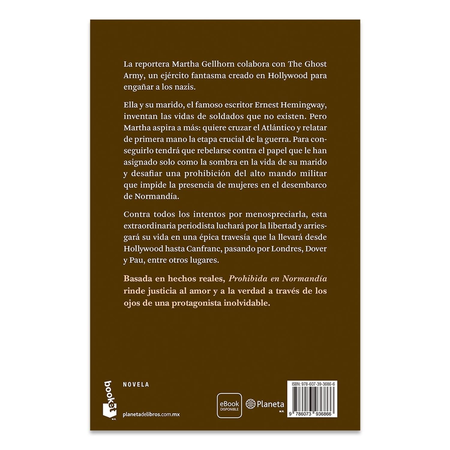 Descripción: Arriesgó su vida para contar la verdad. La odisea de la única mujer que participó en el trascendental desembarco La reportera Martha Gellhorn. colabora con The Ghost Army, un ejército fantasma. creado en Hollywood para engañar a los nazis. Ella y su marido, el famoso Ernest Hemingway., inventan las vidas de soldados que no existen. Pero Martha aspira a más; quiere cruzar el Atlántico y relatar de primera mano la etapa definitiva de la guerra. Para conseguirlo tendrá que rebelarse contra el rol que pretenden asignarle como mera sombra en la vida de su marido y, además, desafiar una prohibición del alto mando militar. que impide la presencia de mujeres en el desembarco de Normandía. Contra todos los intentos de borrarla, esta extraordinaria periodista luchará por la libertad. en una épica travesía que la llevará desde Hollywood hasta Canfranc., pasando por Londres, Dover y Pau, entre otros lugares. Ochenta años después del Día D a la Hora H, Prohibida en Normandía es una novela que le rinde justicia al amor y a la verdad.