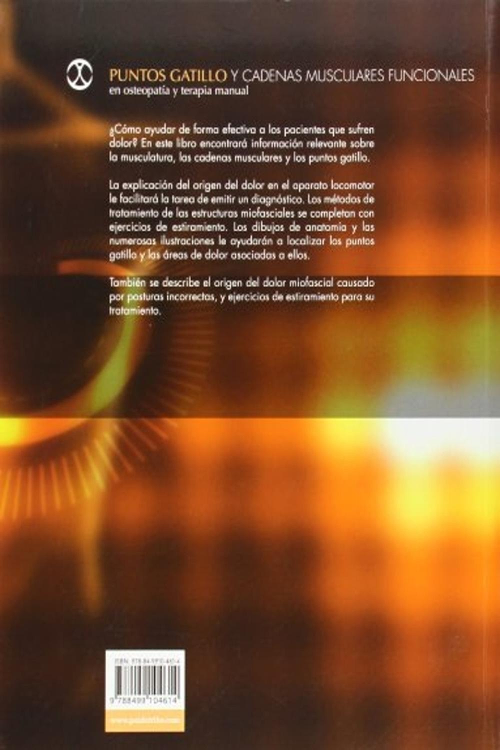 Descripción: ¿cómo ayudar de forma efectiva a los pacientes que sufren de dolor? en este libro encontrará información relevante sobre la musculatura, las cadenas musculares y los puntos gatillo.brla explicación del origen del dolor en el aparato locomotor le facilitará la tarea de emitir un diagnóstico. los métodos de tratamiento de las estructuras miofasciales se completan con ejercicios de estiramiento. los dibujos de anatomía y las numerosas ilustraciones le ayudarán a localizar los puntos gatillo y las áreas de dolor asociadas a ellos.brtambién se describe el origen del dolor miofascial causado por posturas incorrectas, y ejercicios de estiramiento para su tratamiento.