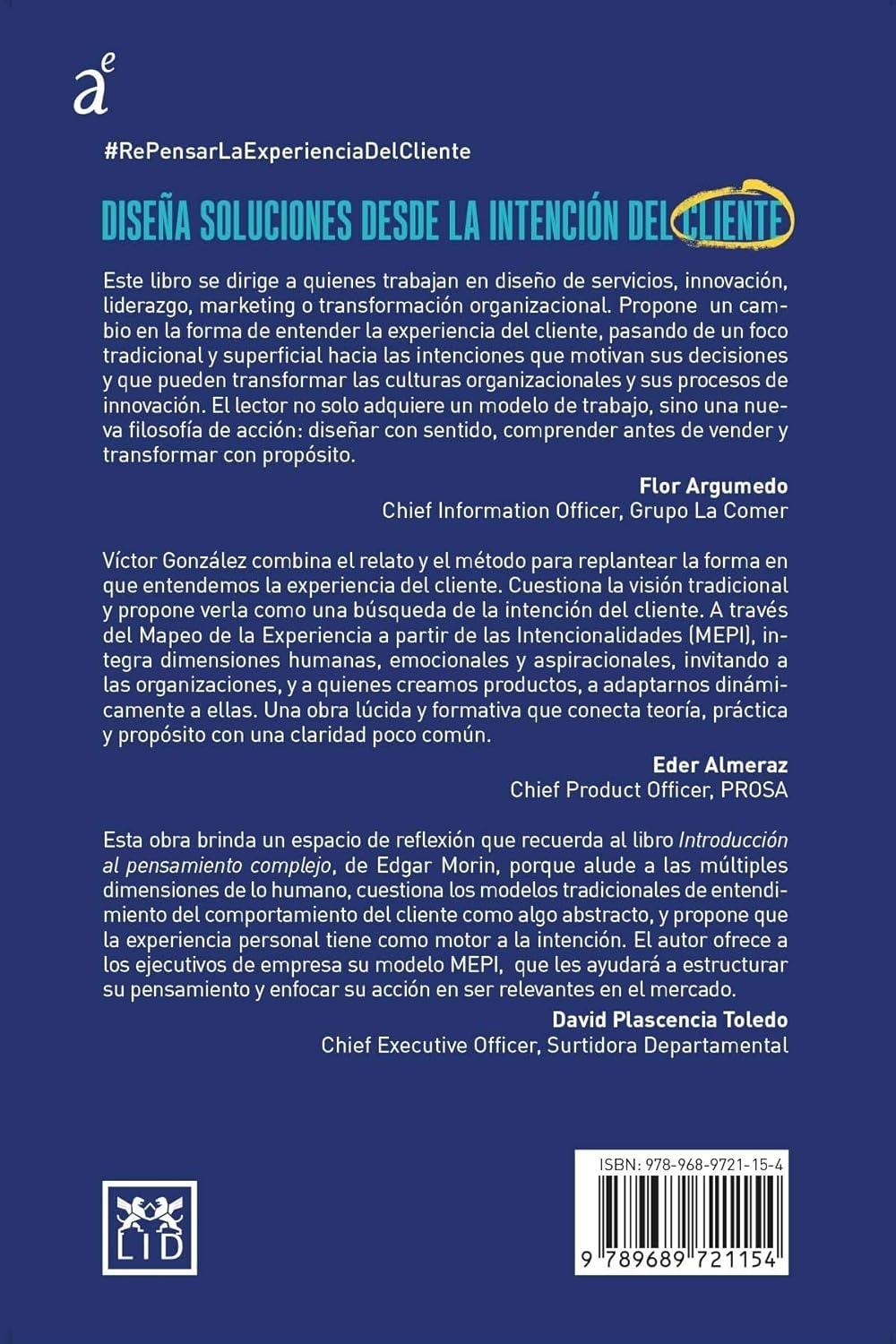 Descripción: Comprender a los clientes no es observar lo que hacen, sino descubrir lo que realmente buscan lograr. Repensar la experiencia del cliente propone mirar más allá de los comportamientos para entender las intenciones que guían cada decisión. En este libro, Víctor Manuel González ofrece una mirada renovadora que combina profundidad conceptual con aplicación práctica, invitando a rediseñar la manera en que las organizaciones crean valor. Fruto de años de docencia, investigación y consultoría, el autor presenta el modelo (Mapeo de la Experiencia a partir de las Intencionalidades), una metodología que permite conceptualizar, medir y diseñar experiencias desde la libertad y la motivación humana. A diferencia de los enfoques conductistas centrados en manipular comportamientos, el modelo parte del respeto al libre albedrío y de la convicción de que la innovación auténtica surge cuando las empresas ayudan a las personas a alcanzar lo que genuinamente desean. Más que una teoría, este libro es una invitación a transformar la relación entre las organizaciones y sus públicos. Repensar la experiencia del cliente propone un diálogo abierto, ético y evolutivo sobre cómo comprender y acompañar el progreso humano a través de productos, servicios y experiencias que inspiren significado y propósito.