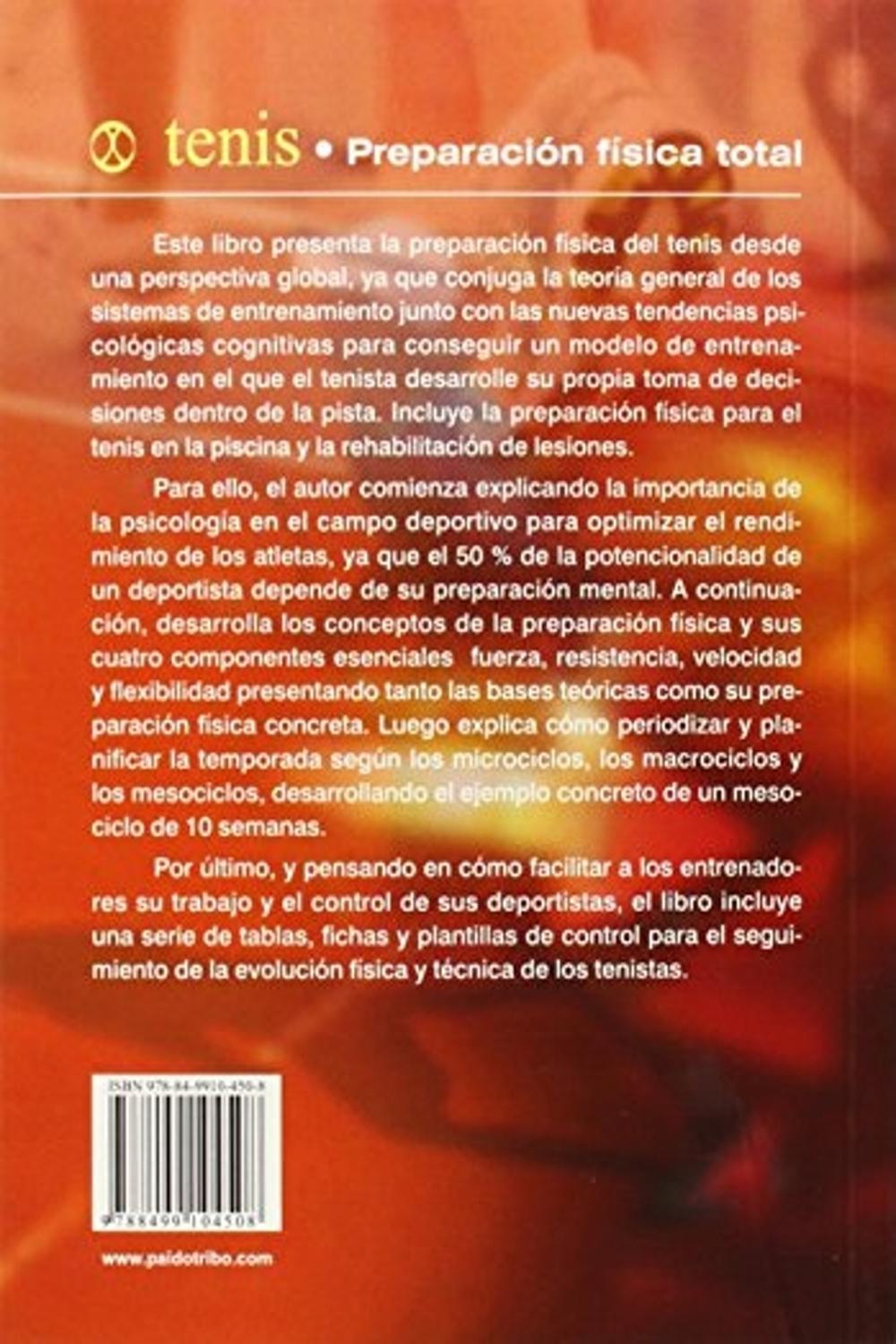 Descripción: Este libro presenta la preparación física del tenis desde una perspectiva global, ya que conjuga la teoría general de los sistemas de entrenamiento junto con las nuevas tendencias psicológicas cognitivas para conseguir un modelo de entrenamiento en el que el tenista desarrolle su propia toma de decisiones dentro de la pista. incluye la preparación física para el tenis en la piscina y la rehabilitación de lesiones.brpara ello, el autor comienza explicando la importancia de la psicología en el campo deportivo para optimizar el rendimiento de los atletas, ya que el 50 % de la potencionalidad de un deportista depende de su preparación mental. a continuación, desarrolla los conceptos de la preparación física y sus cuatro componentes esenciales fuerza, resistencia, velocidad y flexibilidad presentando tanto las bases teóricas como su preparación física concreta. luego explica cómo periodizar y planificar la temporada según los microciclos, los macrociclos y los mesociclos, desarrollando el ejemplo concreto de un mesociclo de 10 semanas.brpor último, y pensando en cómo facilitar a los entrenadores su trabajo y el control de sus deportistas, el libro incluye una serie de tablas, fichas y plantillas de control para el seguimiento de la evolución física y técnica de los tenistas.