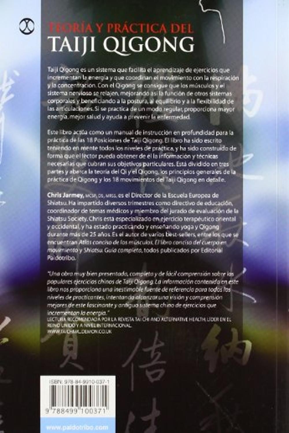 Descripción: Taiji qigong es un sistema que facilita el aprendizaje de ejercicios que incrementan la energía y que coordinan el movimiento con la respiración y la concentración. con el qigong se consigue que los músculos y el sistema nervioso se relajen, mejorando así la función de otros sistemas corporales y beneficiando a la postura, al equilibrio y a la flexibilidad de las articulaciones. si se practica de un modo regular, proporciona mayor energía, mejor salud y ayuda a prevenir la enfermedad.breste libro actúa como un manual de instrucción en profundidad para la práctica de las 18 posiciones de taiji qigong. el libro ha sido escrito teniendo en mente todos los niveles de práctica, y ha sido construido de forma que el lector pueda obtener de él la información y técnicas necesarias que cubran sus objetivos particulares. está dividido en tres partes y abarca la teoría del qi y el qigong, los principios generales de la práctica de qigong y los 18 movimientos del taiji qigong en detalle.brchris jarmey, mcsp, ds, mrss, es el director de la escuela europea de shiatsu. ha impartido diversos trimestres como directivo de educación, coordinador de temas médicos y miembro del jurado de evaluación de la shiatsu society. chris está especializado en ejercicio terapéutico oriental y occidental, y ha estado practicando y enseñando yoga y qigong durante más de 25 años. es el autor de varios best-sellers, entre los que se encuentran atlas conciso de los músculos, el libro conciso del cuerpo en movimiento y shiatsu. guía completa, todos publicados por editorial paidotribo.br“una obra muy bien presentada, completa y de fácil comprensión sobre los populares ejercicios chinos de taiji qigong. la información contenida en este libro nos proporciona una inestimable fuente de referencia para todos los niveles de practicantes, intentando alcanzar una visión y comprensión mejores de este fascinante y antiguo sistema chino de ejercicios que incrementan la energía.”