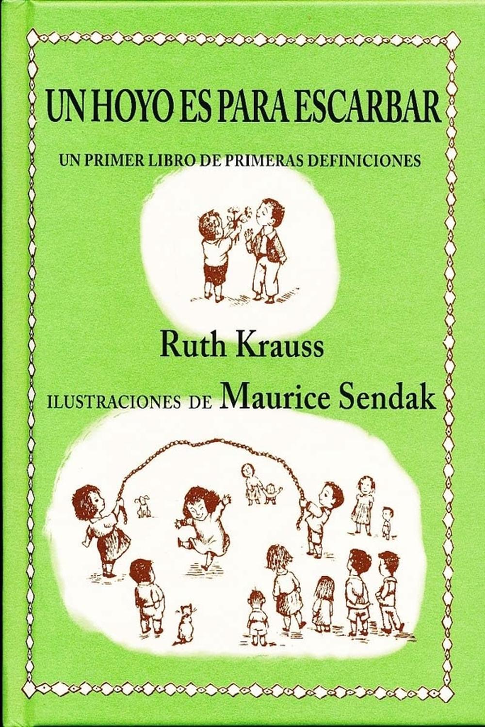 Descripción: "El puré de patata es para que a todo el mundo le den de sobra. La hierba es para tenerla encima del suelo, con tierra por debajo y tréboles por el medio. Una caracola es para oír el mar." "Un hoyo es para escarbar fue, en 1952, la obra con la que Ruth Krauss y Maurice Sendak iniciaron una fructífera colaboración literario-artística, que se prolongaría hasta 1960 y se retomaría en 2005 con Osos. Juntos innovaron en el género del álbum ilustrado con propuestas tan novedosas como este primer libro de primeras definiciones, que contiene una parte del amplio y variado universo infantil: las partes del cuerpo, objetos y animales del entorno próximo, actividades cotidianas, elementos del juego